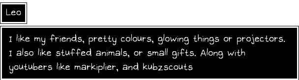 I like glowing things! like lava lamps, glow sticks, projectors, ect!